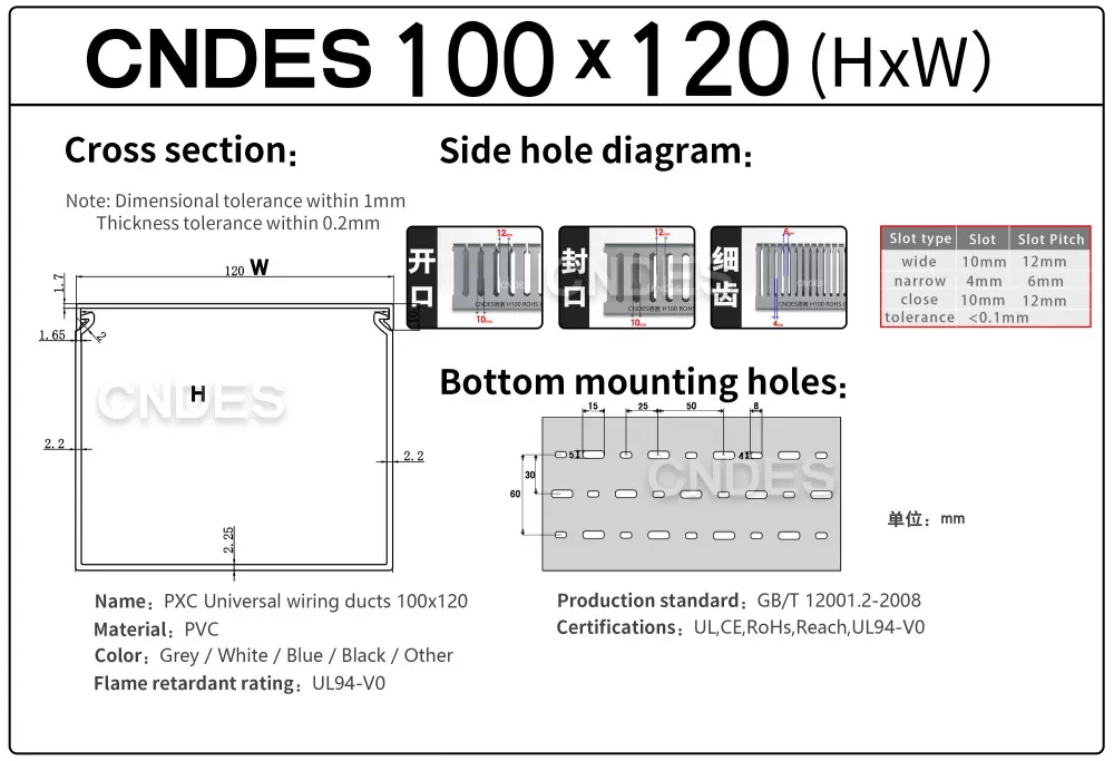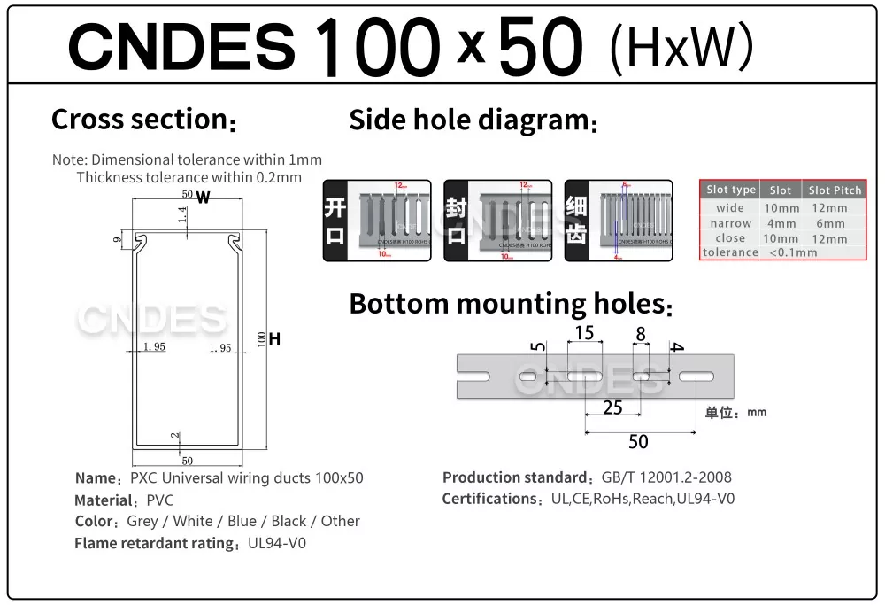 CNDES to profesjonalny producent korytek kablowych z 24-letnim doświadczeniem, specjalizujący się w produkcji niestandardowych kanałów kablowych do obudów PCV o wysokości 100 mm z otwartymi szczelinami. W tym miejscu przedstawimy nasze produkty z serii korytek kablowych o wysokości 100 mm.