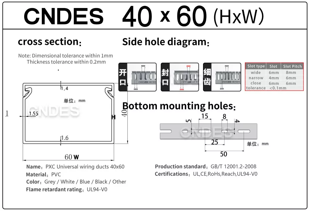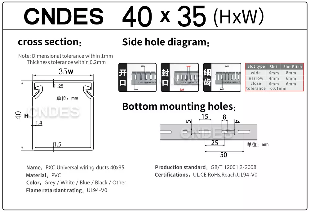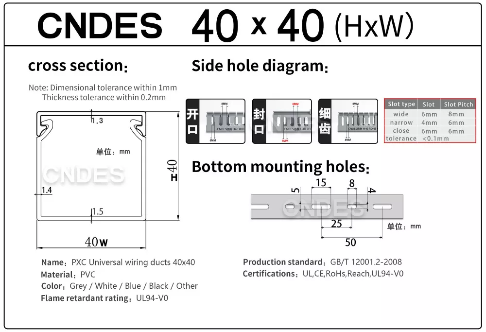 CNDES jest wiodącym producentem i dostawcą kanałów bieżni z okablowaniem szczelinowym z PVC. Tutaj przedstawimy nasze korytka kablowe o wysokości 40 mm, w tym 40*25, 40*30, 40*35, 40*40 i 40*60.