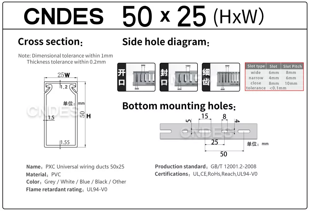 Wykonane z wysokiej jakości surowców PVC, przyjazne dla środowiska, trudnopalne i posiadające właściwości fizyczne o wysokiej wytrzymałości. Możesz mieć pewność, że kupisz kanał elektryczny z PCV CNDES z naszej fabryki.