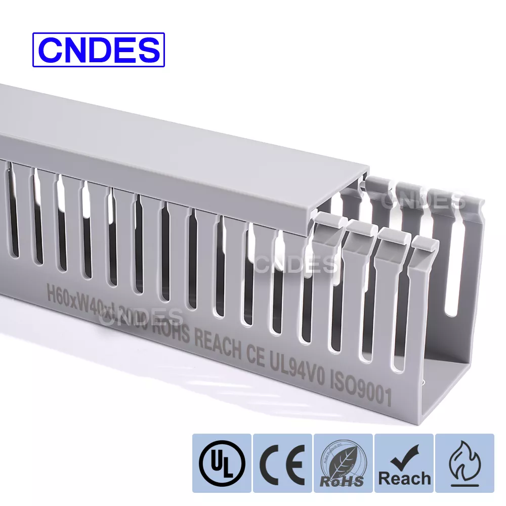 Wysokiej jakości, trudnopalny kanał kablowy z PVC 60×40 to niezawodne rozwiązanie do zarządzania kablami przeznaczone do paneli elektrycznych, szaf sterowniczych i systemów automatyki przemysłowej, gdzie bezpieczeństwo i organizacja mają kluczowe znaczenie. Wyprodukowany przez CNDES, zaufanego producenta i dostawcę kanałów kablowych z PVC w Chinach, model ten łączy w sobie kompaktowe wymiary z certyfikowaną ognioodpornością, dzięki czemu idealnie nadaje się do profesjonalnych instalacji elektrycznych.