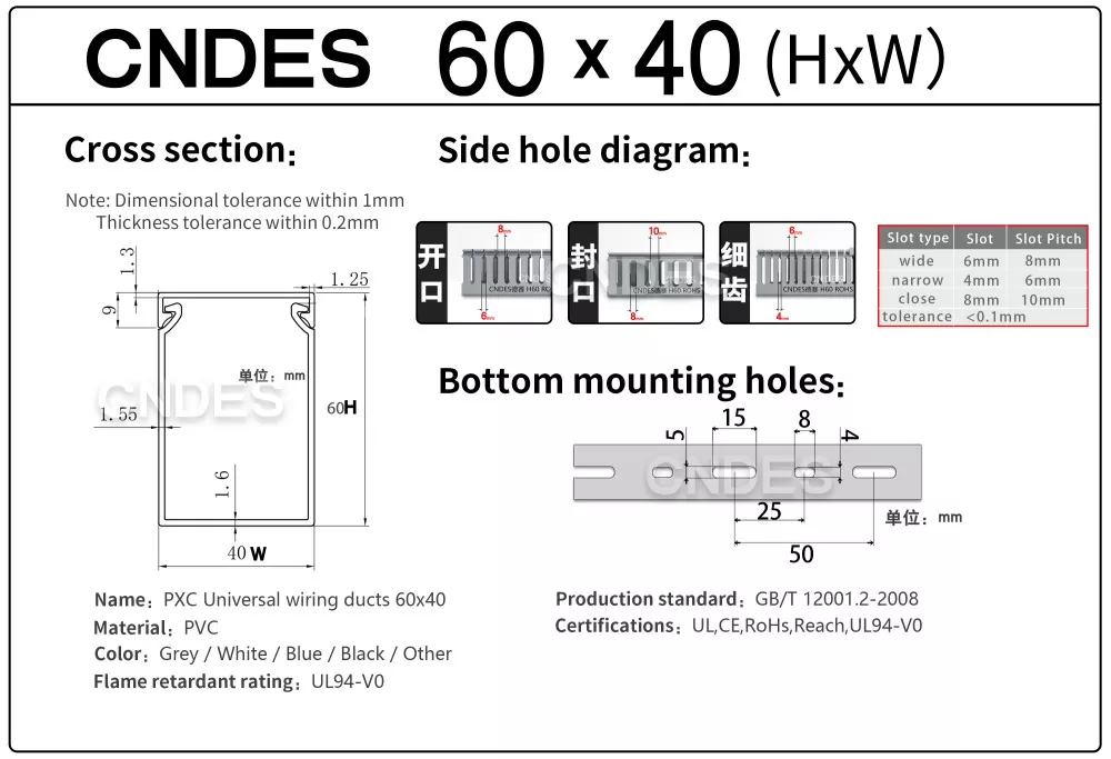Jako doświadczona fabryka niestandardowych, trudnopalnych przewodów rurowych z PVC 60 × 40 w Chinach, CNDES zapewnia: