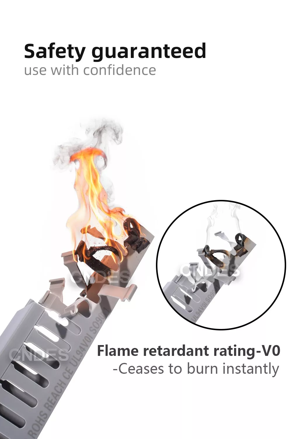 Możesz mieć pewność, że kupisz u nas trudnopalne korytka druciane. Każda partia produkowanych przez nas korytek drucianych przeszła w 100% autorytatywne testy SGS dotyczące zmniejszania palności, co zapewnia dostęp do rzeczywistych danych do kontroli i identyfikowalność raportów, co gwarantuje brak fałszywych etykiet. Stosujemy oryginalne materiały trudnopalne, spełniające normę UL94-V0, realizując zasadę „bezpieczeństwa bez kompromisów” od surowców po gotowe produkty. Oznacza to, że każdy metr korytka drucianego, którego używasz, czy to do okablowania domowego, zastosowań biurowych czy przemysłowych, jest ognioodporny i naprawdę bezpieczny, co można zweryfikować.