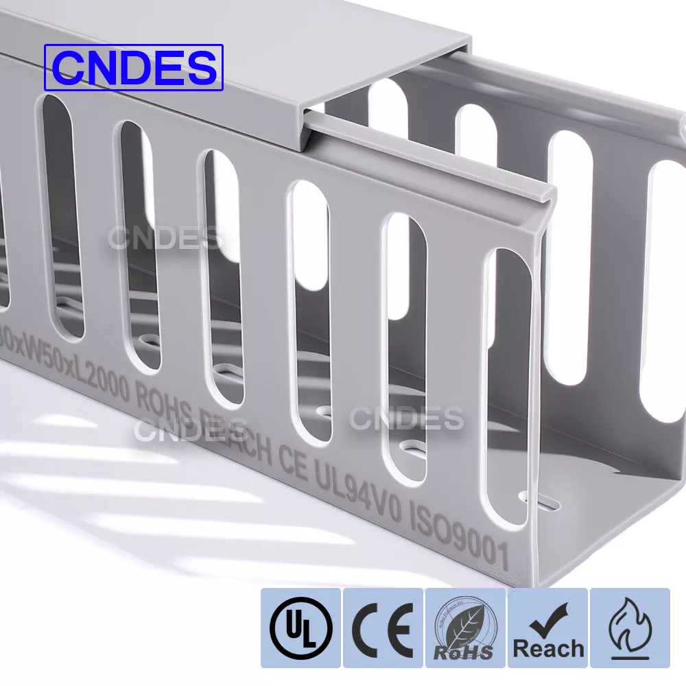 CNDES to profesjonalny producent korytek kablowych szczelinowych z PCV zlokalizowany w Chinach. Tutaj przedstawimy nasz organizer kabli z panelami PCV ze szczelinami 80×50, gdzie 80*50mm reprezentuje korytko kablowe o wysokości 80mm i szerokości 50mm.