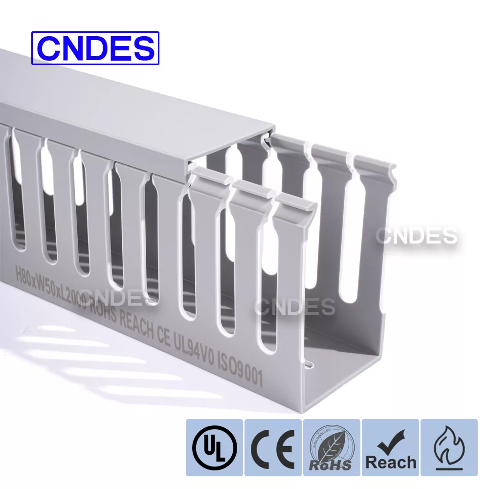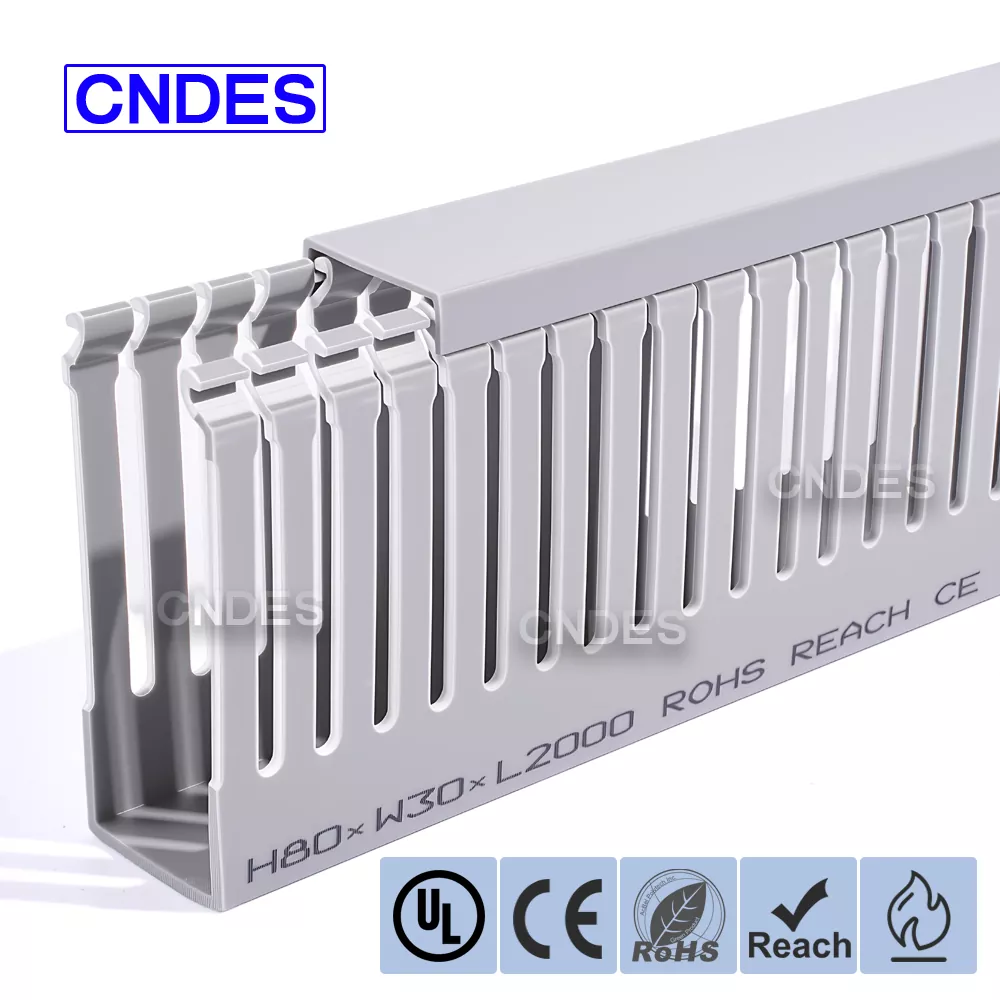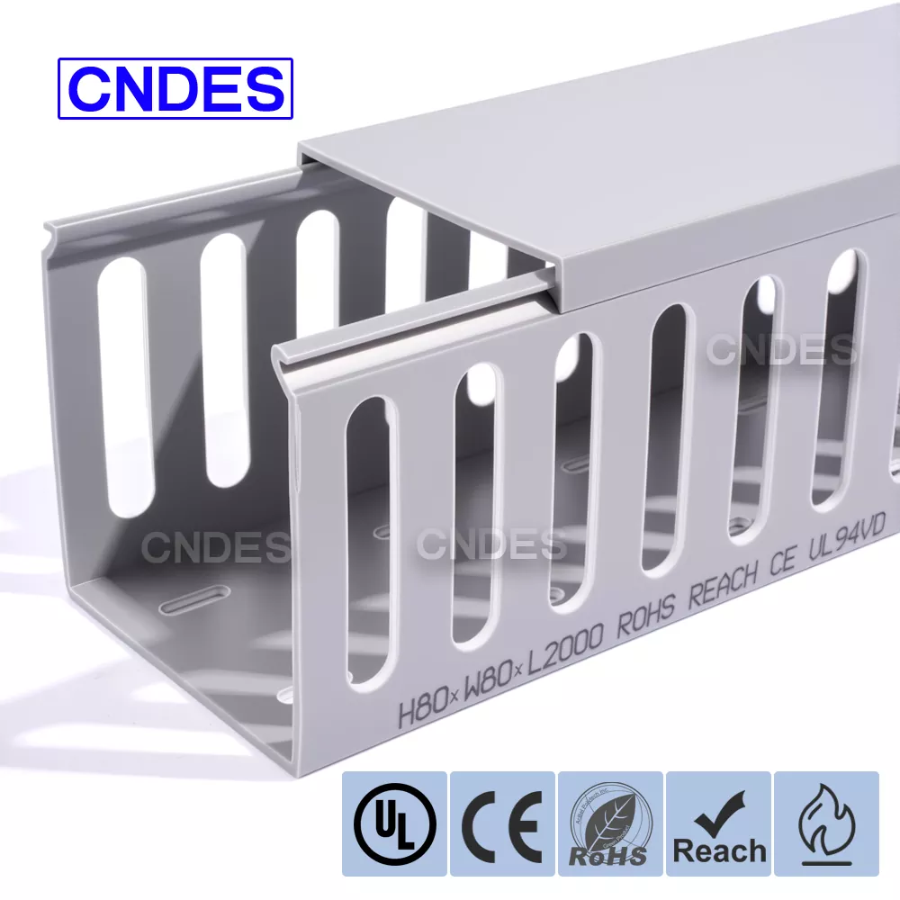 Dostosowany do potrzeb klienta kanał kablowy z PCV ze szczeliną o wysokości 80 mm firmy CNDES został zaprojektowany z myślą o wydajnym zarządzaniu kablami w systemach automatyki przemysłowej. Dzięki wysokości 80 mm i konstrukcji szczelinowej kanał ten zapewnia wystarczającą ilość miejsca na okablowanie o dużej gęstości, jednocześnie utrzymując kable uporządkowane i chronione w złożonych systemach sterowania, sterownikach PLC i okablowaniu maszyn.
