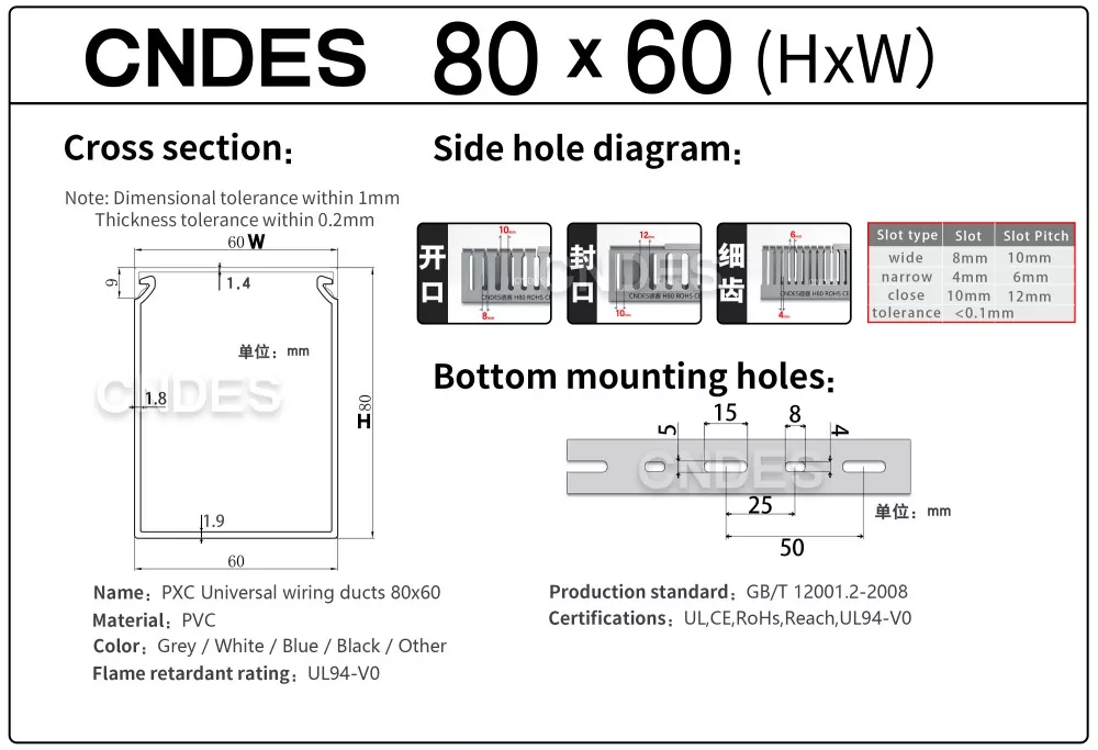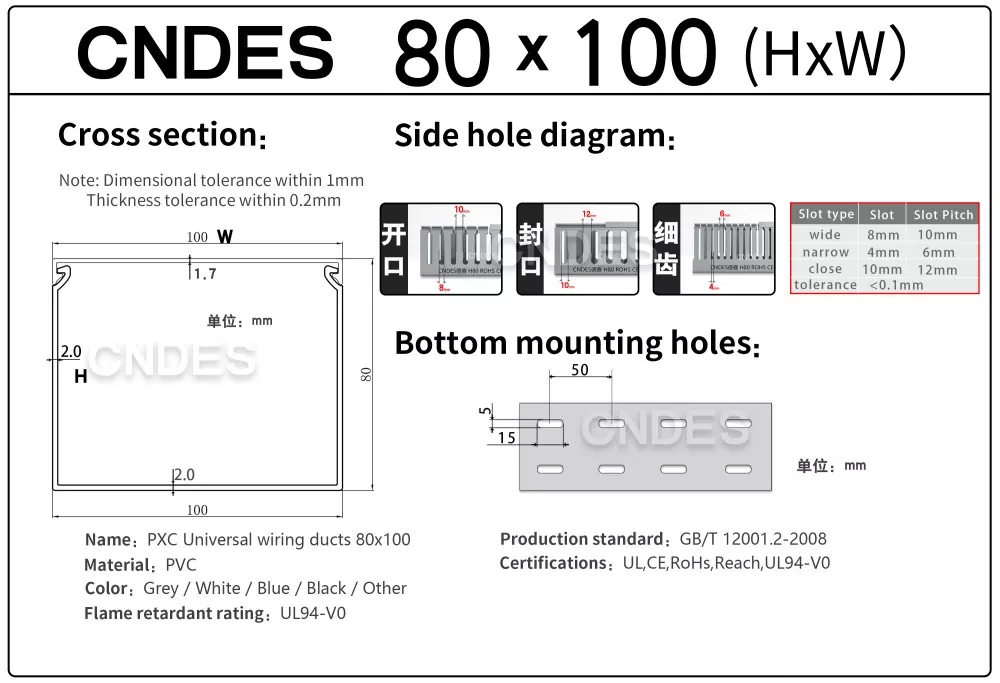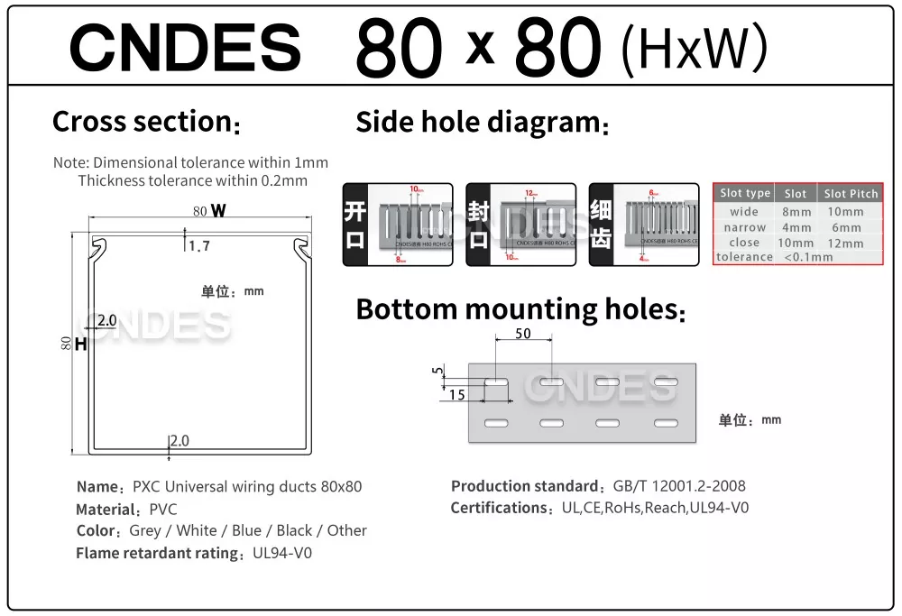 Zapewnienie jakości: Wszystkie wysokowydajne, szczelinowe kanały kablowe z PVC o wysokości 80 są certyfikowane zgodnie z normami UL, RoHS, REACH, ISO, CE i innymi, spełniając wymagania dotyczące ochrony środowiska i bezpieczeństwa. W przypadku problemów z jakością (np. pęknięć, deformacji) dostawcy świadczą usługi zwrotu/wymiany.