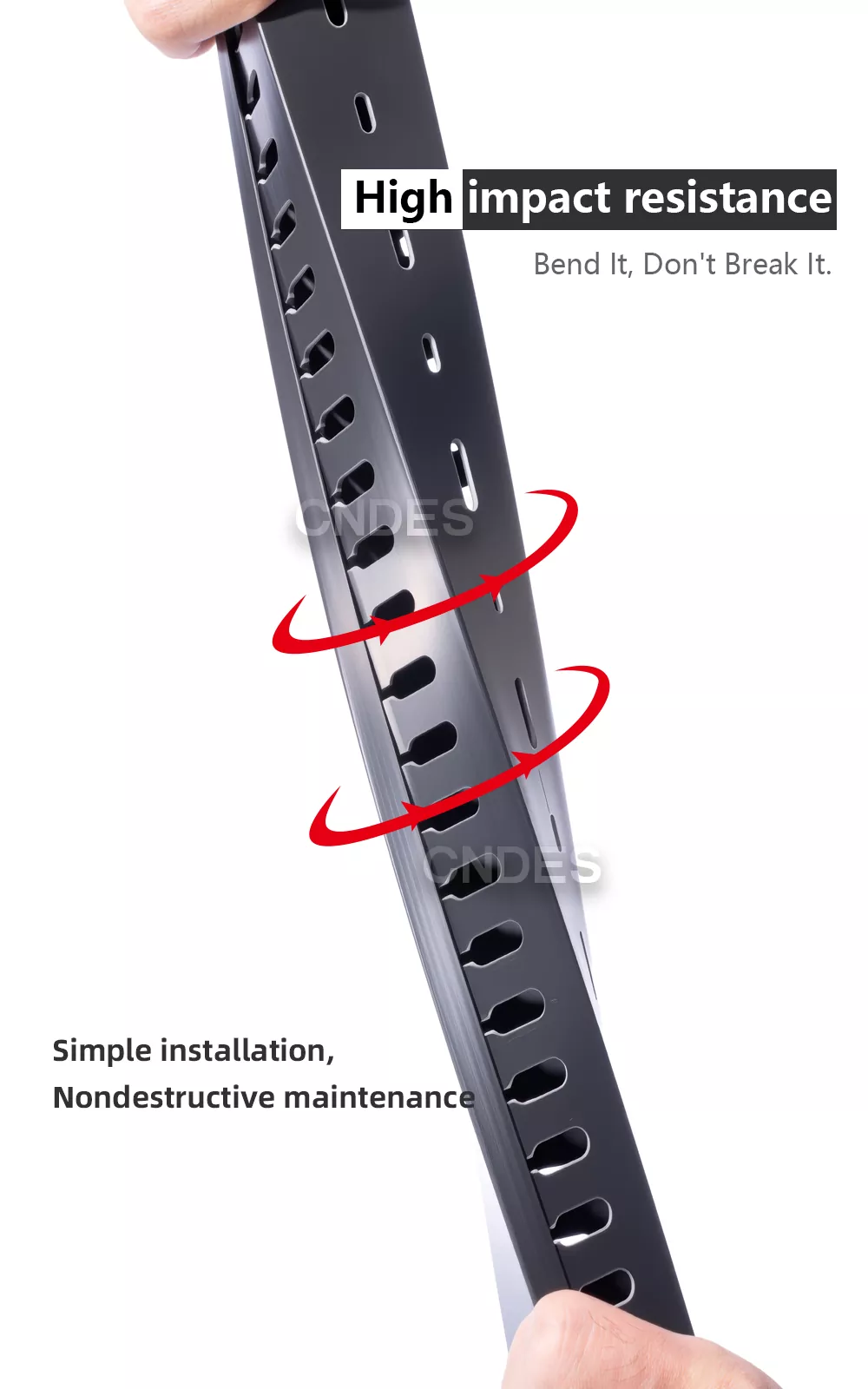 CNDES, jako profesjonalna fabryka badawczo-rozwojowa i produkcyjna czarnych szczelinowych kanałów kablowych z PVC w Chinach, specjalizuje się w produkcji masowej, ścisłej kontroli jakości ISO i usługach OEM/ODM. Czarne obudowy są powszechnie stosowane w scenariuszach wymagających ukrytego okablowania (takich jak kino domowe lub biura) lub w celu rozróżnienia różnych obwodów funkcjonalnych (np. linii wysokiego i niskiego napięcia), zwiększając w ten sposób efektywność zarządzania.